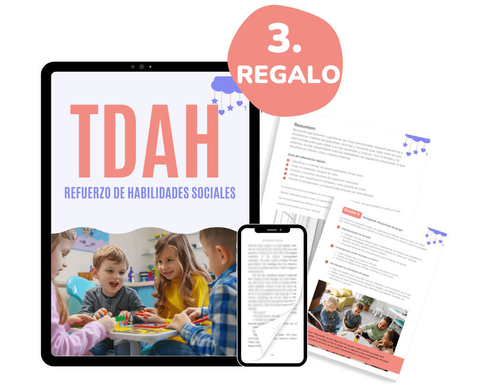 TAMBIÉN INCLUYE: 🎁 5 REGALOS GRATIS 🎁 que te ayudan a manejar las dificultades escolares, reducir los berrinches, mejorar las habilidades sociales y mucho más (valor total de €184)